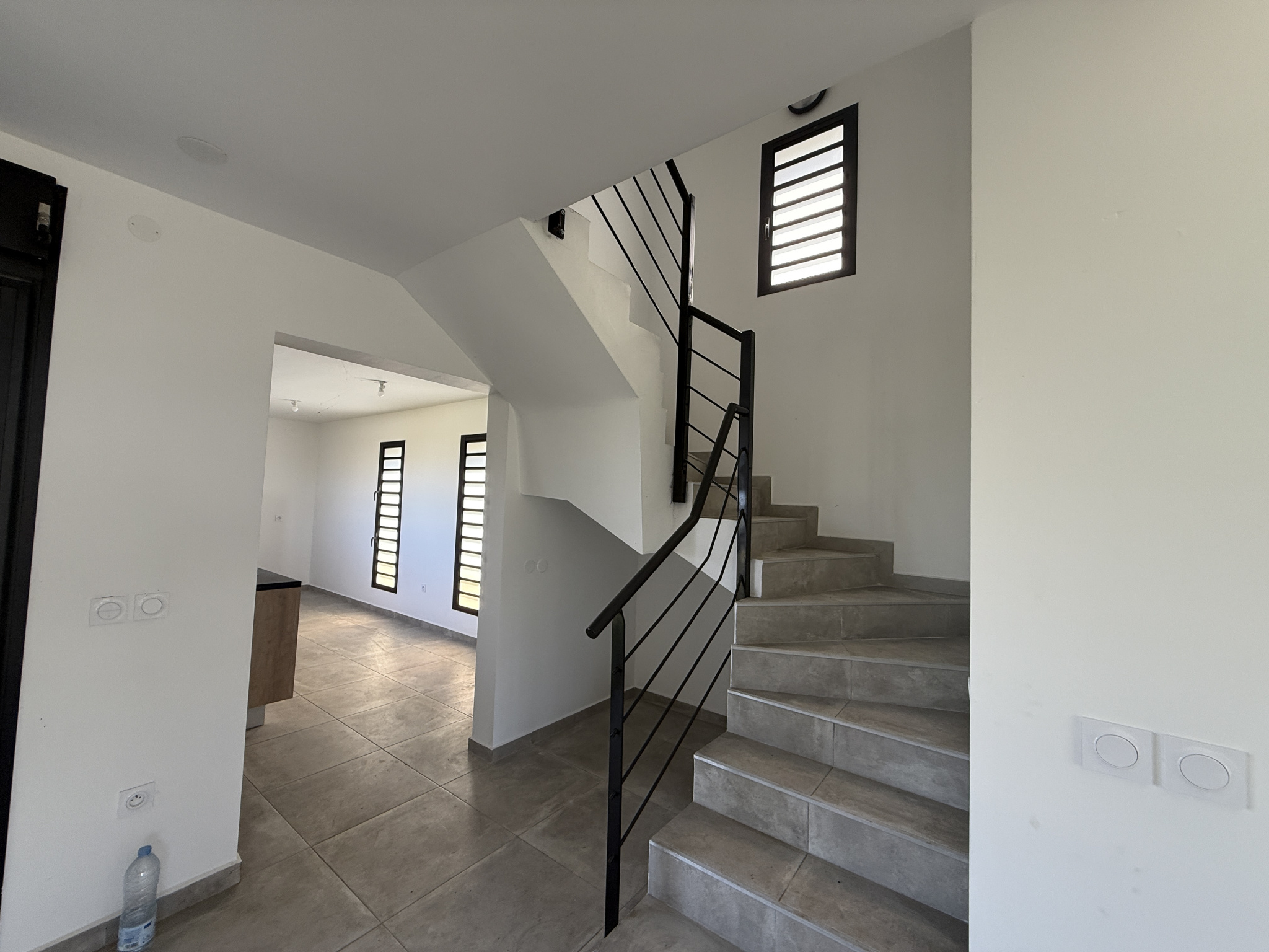Découvrez cette superbe maison neuve de 110 m2, construite et livrable immédiatement, idéalement située dans un quartier calme de Piton Saint-Leu, offrant une vue imprenable sur l'océan. Au rez-de-chaussée : - Un lumineux salon-séjour - Une cuisine équipée ouverte - Un grand WC avec meuble vasque et coin machine à laver. À l'étage : - Trois chambres confortables - Une salle de bain moderne avec douche à l'italienne et meuble double vasque. La maison nécessite uniquement l'aménagement extérieur du jardin et l'installation du portail, vous permettant de personnaliser votre espace selon vos envies. Un cadre de vie paisible, une belle luminosité et une vue mer exceptionnelle font de cette maison une opportunité rare sur Piton Saint-Leu. Contactez-nous dès maintenant pour organiser une visite et découvrir votre futur chez-vous.